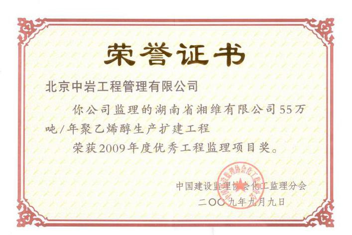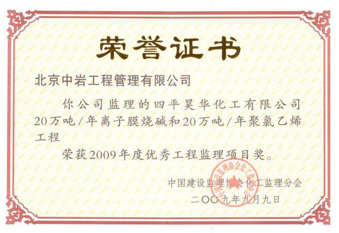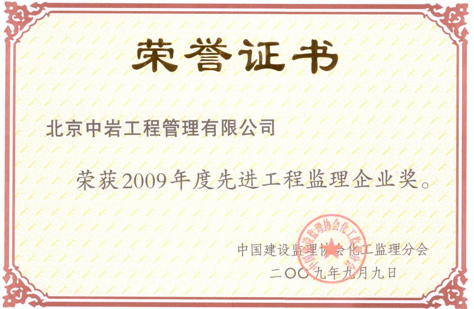 2009年先進(jìn)工程監(jiān)理企業(yè)獎(jiǎng)