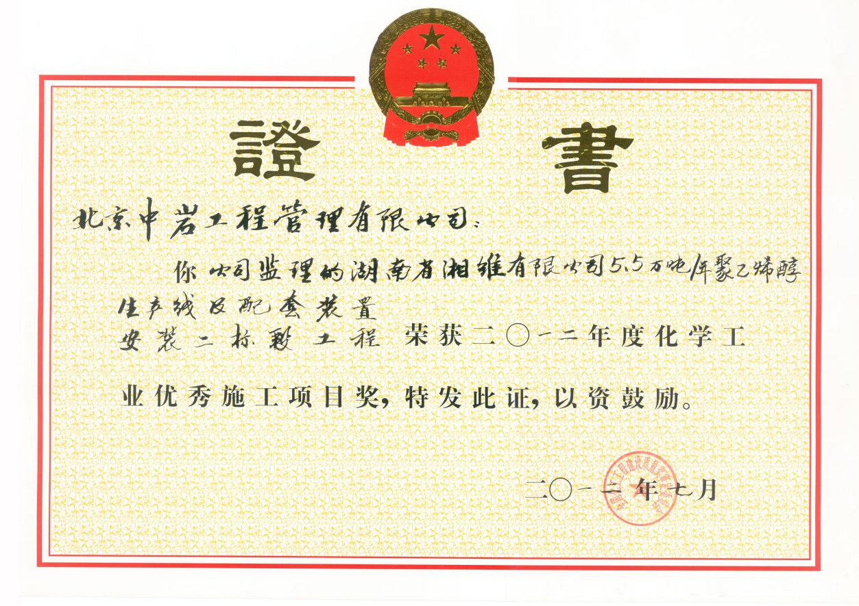 優(yōu)秀施工項(xiàng)目獎(jiǎng)